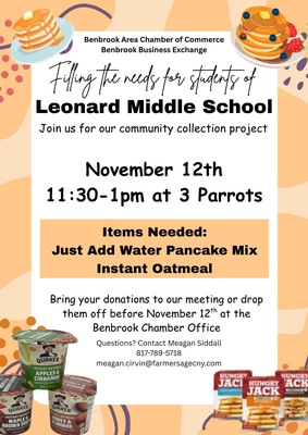 Benbrook Business Exchange is comprised of individuals, each promoting growth within their business. This group helps our members build relationships and participate in a progressive, productive, value-focused networking group.